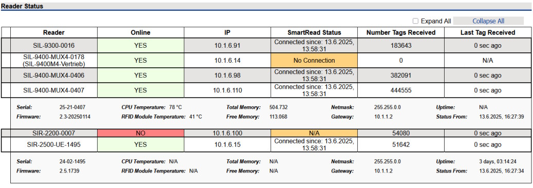 - Unterstützung für SmartRead-Reader und Handheld-Geräte